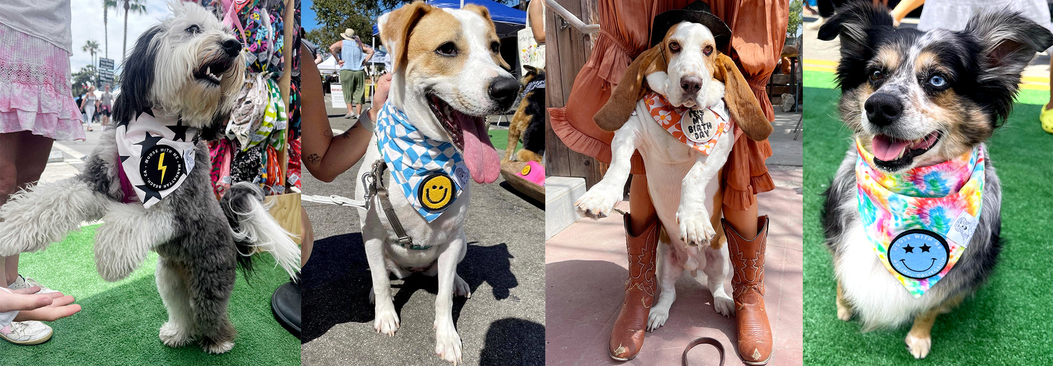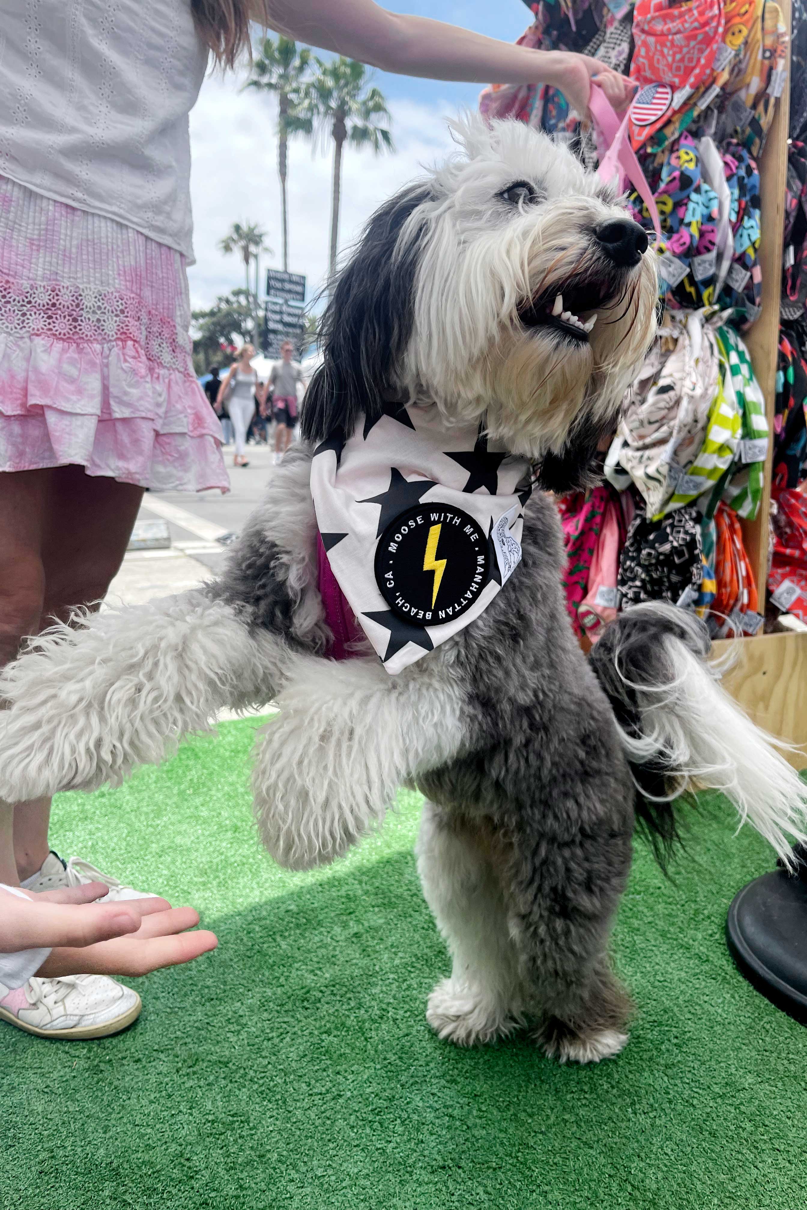 Our Moose With Me® double-sided dog bandanas are a total statement piece for your dog. Customize these tie-on dog bandanas by adding interchangeable velcro embroidered patches! Made in the USA with 100% cotton & non toxic + eco friendly inks.