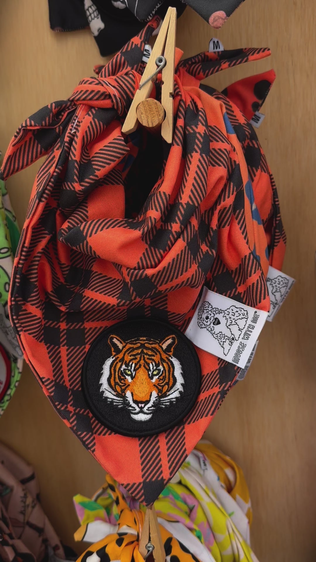 Dog Bandana Orange Plaid - Customize by adding Interchangeable Velcro Embroidered Patches