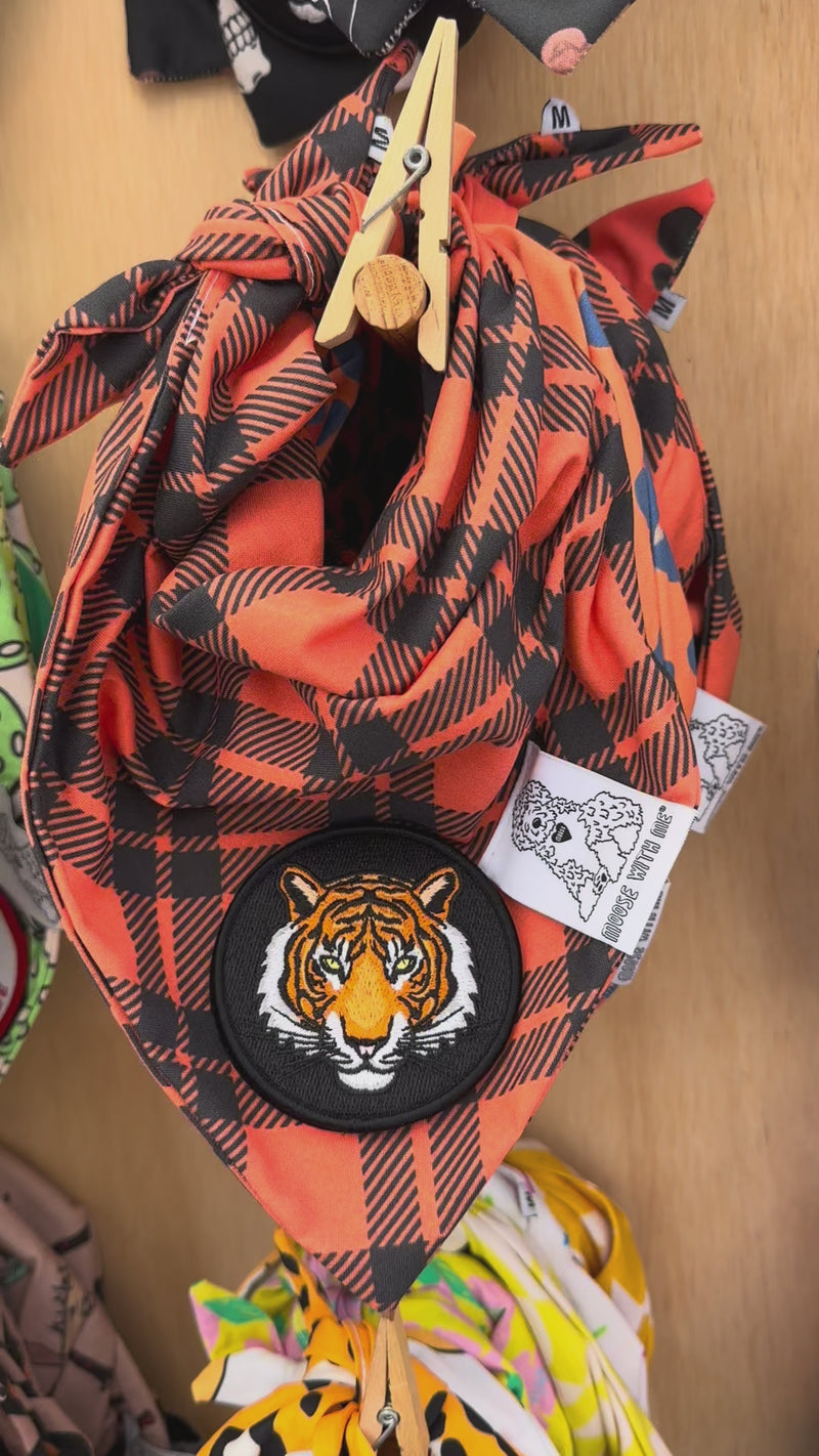 Dog Bandana Orange Plaid - Customize by adding Interchangeable Velcro Embroidered Patches